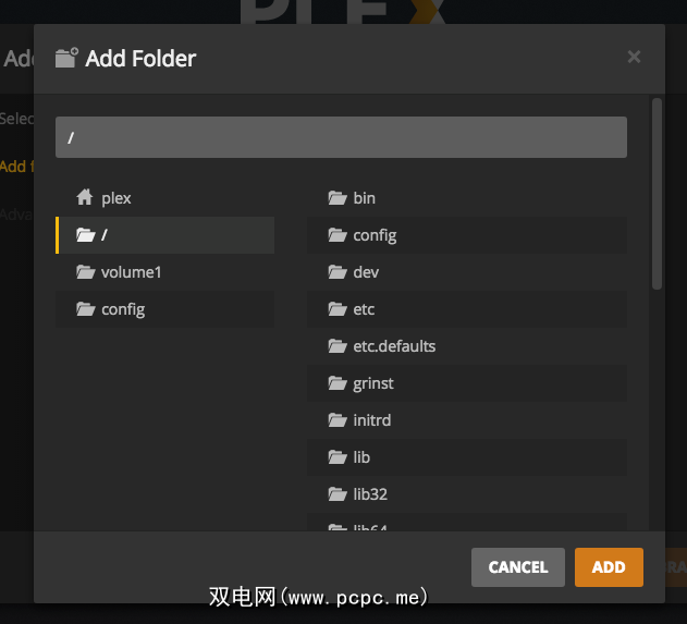 启动后在Plex服务器应用程序上,可以通过从 /(root)/ volume1 / folderName 找到自定义文件夹来添加自定义文件夹。