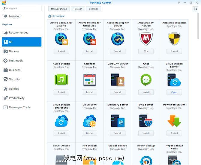 成为最受欢迎的NAS品牌的好处在于,他们的服务器中提供了满足各种需求的各种服务器的定制软件包。应用商店-其中许多是由Synology自己创建的第一方。