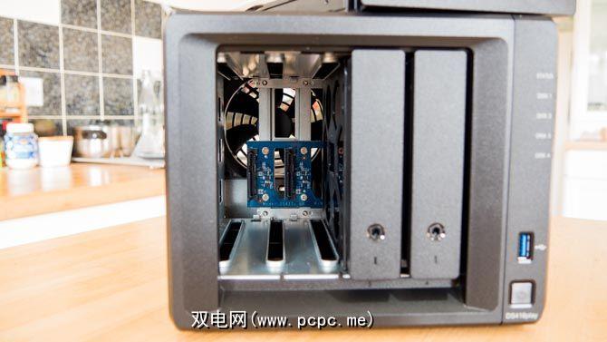 四个驱动器托盘是可锁定的,但可拆下来而无需拆开,这不同于413j和416play,这需要您卸下外壳。这听起来比它还糟,但我们实际上是在谈论每年一次的操作需要10分钟。尽管如此,无论如何增加易于更换的驱动器托架都是一个不错的设计更改。