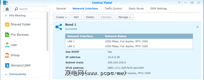 DS418play的一个有趣的新功能是链接绑定或链接聚合。由于该设备提供了两个完整的千兆以太网端口,因此可以一次插入两个端口,并用于创建单个更高速度的接口。