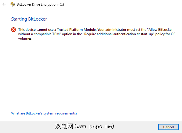 打开BitLocker ,您可能会遇到以下消息: