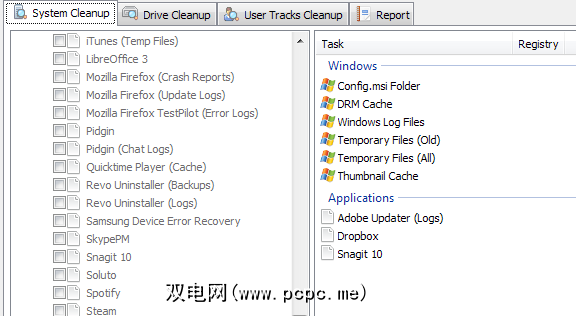 此标签为您提供了一长串应用程序,程序可以检查跟踪。这些主要是最近使用的文件列表,Flash cookie等。在这里,分析不详细的事实确实会给您带来麻烦。例如,我可能想删除一些 Flash cookie,但不是全部。我发现没有办法使用DrivePurge选择性地执行此操作,至少在此早期版本中没有。
