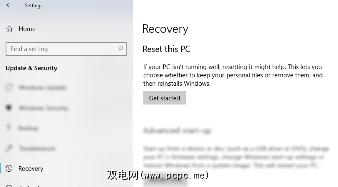 打开开始>设置>更新和安全性开始,在菜单中选择恢复左侧菜单。
