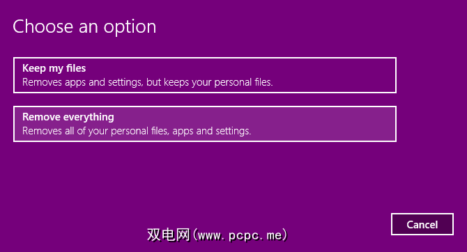 在重置此计算机下,单击或点击入门,然后使用保留我的文件 >选项。