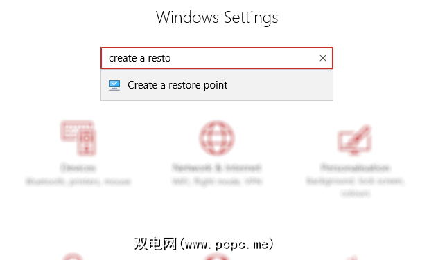 打开开始 >(或按 Windows键+ I 打开设置),然后在搜索框中键入创建还原点。