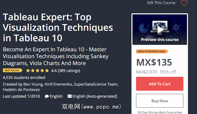 Udemy的其他Tableau高级课程是Mastering Tableau 10,Tableau 10 Development和Tableau 10商业智能解决方案。它们的价格都差不多。