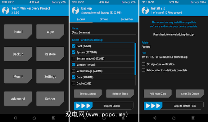 恢复:引导加载程序首先响起的就是恢复。像TWRP这样的自定义恢复将使您能够备份整个设备,进行调整并安装新的自定义操作系统。