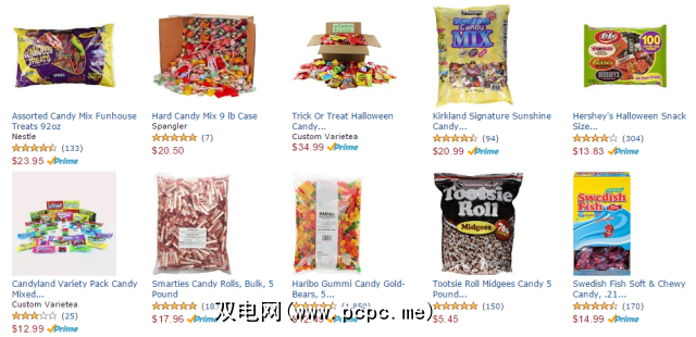 亚马逊在这里有大量的散装糖果产品集合,并且如果您是Amazon Prime用户,则其中许多人有资格获得免费的两天送货服务。