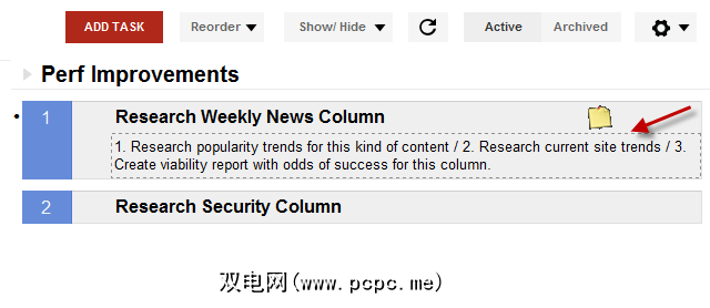 另一个不错的功能是便笺图标,该图标将在待办事项下的文本框中下拉,允许您输入特定的详细信息为了那个任务。当您计划工作并了解如何执行任务时,这将很有帮助。