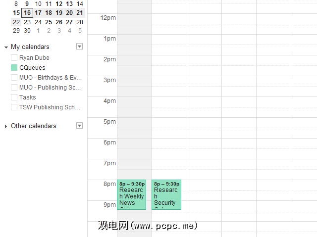 同步成功后,您可以登录Google日历帐户,并在日历列表下方的左侧,您会看到GQueues显示为带有自己颜色代码的新日历。