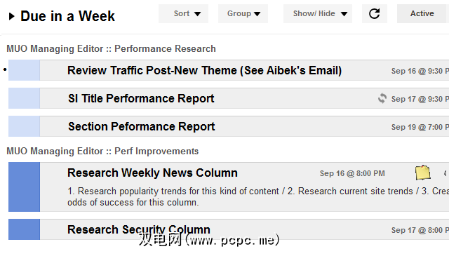 如您所见,左侧导航栏的组织方式类似于文件柜。每个文件都是您可能要管理的主要区域。就我而言,我不仅为我的不同工作创建了文件夹,还为我执行的不同角色或工作类别创建了文件夹,每个文件夹都有自己的一组重要项目和计划。例如,对于PCPC.me,我创建了一个用于SEO工作的文件夹,一个用于编写工作的文件夹以及一个用于管理编辑工作的文件夹。