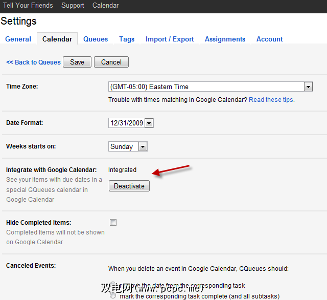 一个很好的第一步是将GQueues帐户与Google日历集成。您可以通过点击屏幕顶部的“日历"来实现。在“与Google日历集成"下,只需点击“激活"按钮。激活后,您将在该位置看到“已集成"状态。