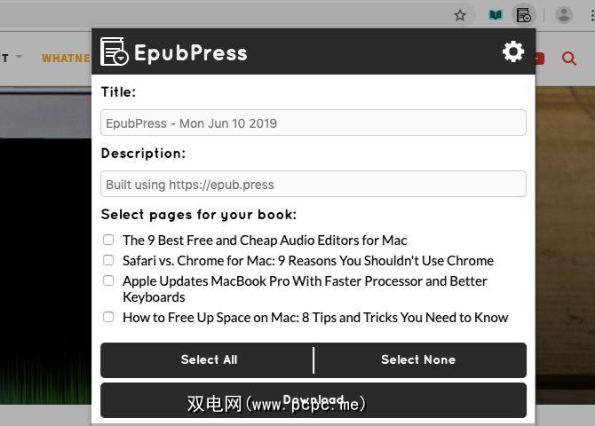 这仅适用于Chrome用户。 EpubPress扩展程序将您喜欢的网站和博客中的文章转换为EPUB。