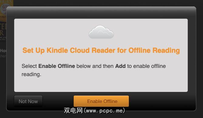 您可以通过导航到read.amazon.com并登录到您的Amazon帐户来使用Kindle for Chrome。接下来会看到Kindle Cloud Reader,但它会被一个提示隐藏起来,使您可以在离线状态下保存要阅读的书。