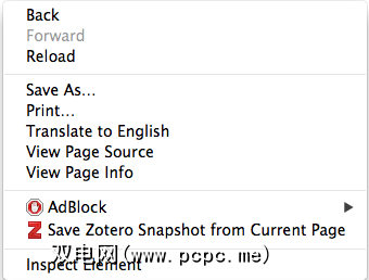 参考网页也很容易。只需单击网页中的任意位置,然后单击Zotero图标旁边的“从当前页面生成快照"。该程序将完成其余的工作。