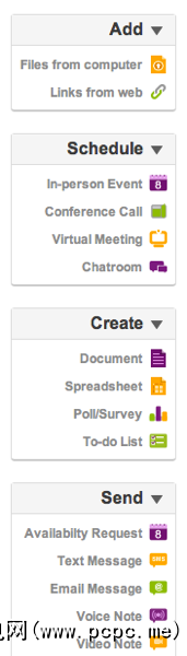 Wiggio包含十几种不同的工具,但实际上,您的所有群组及其各自的文档,日历,聊天,群组供稿,并且可以在一个地方访问其他资源。小组的右侧包括用于上传文件,添加Web链接,安排面对面的事件,电话会议,虚拟会议和在线聊天的工具。