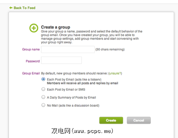 您可以先在Wiggio上发起一个群组,然后再在该网站上注册。您所要做的就是提供一个组名,一个密码,然后选择希望如何通知成员的方式,例如电子邮件或SMS。创建群组后,系统会提示您在该网站上注册帐户。