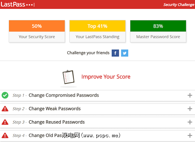 2。 Lastpass安全挑战赛(Chrome,Firefox,Safari,Opera):更新和保护密码