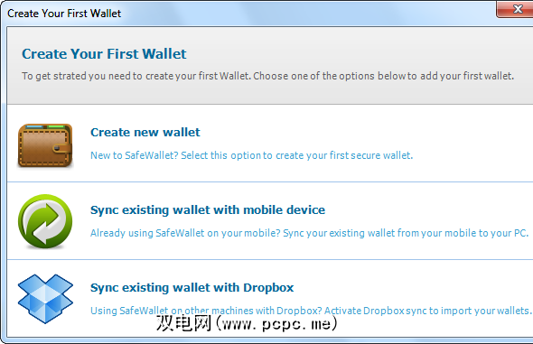 您要做的第一件事是创建一个钱包。如果这是您第二次使用SafeWallet的设备,则可以从移动设备或Dropbox帐户同步现有的钱包。