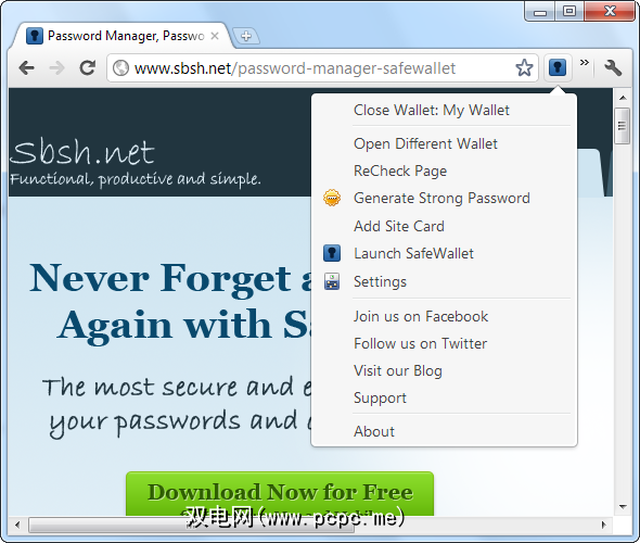 SafeWallet的主界面是桌面应用程序,但是Web浏览器是执行密码操作的地方。不用担心-SafeWallet还会为Mozilla Firefox,Google Chrome和Internet Explorer安装浏览器扩展。