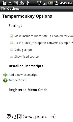 TamperMonkey可以在Android市场上找到,并且免费安装仅占用130KB的空间。该应用程序本身包含一个用于控制和搜索新脚本的GUI,该GUI可以兼作浏览器,供您与喜爱的脚本一起使用。
