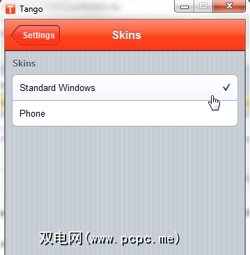 Windows客户端提供了一些可配置的设置(Android和iOS客户端中的设置要少得多),其中有“ Skins "选项。单击它将皮肤从“ Phone "更改为普通的常规Windows。