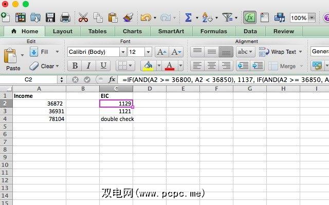 如果您的收入通过最终声明而未超出这些范围,则它将返回字符串“ double check"。在Excel中是这样的: