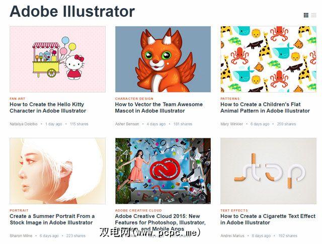从此处开始,转到设计和插图部分,您可以在Adobe Illustrator上找到一系列文章。每个教程都有一个评论部分,用于提供反馈和问题。另外,还可以通过学习指南查看针对单个主题整理的系列文章。例如:该集合包含七个关于简单轮廓的帖子。
