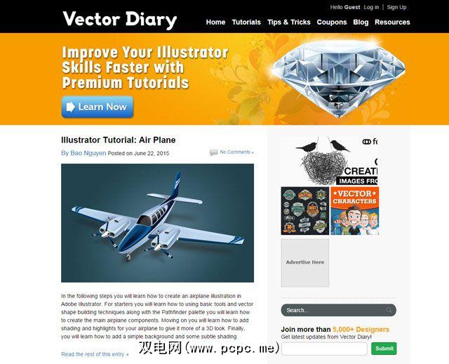 Vector Diary由设计的Tony Soh开始,是许多插图画家教程的绝佳资源。提供。对于新手来说,第一站应该是免费的30天速成课程学习Adobe Illustrator,然后有101个Illustrator技巧与窍门系列(截至目前的数字为26)。