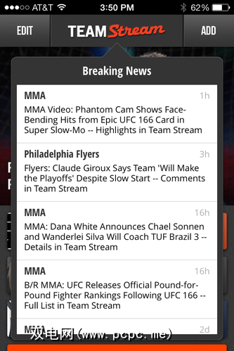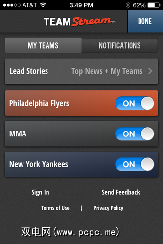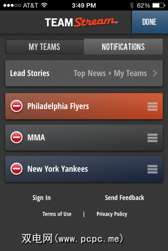 启动应用程序时,您将在顶部看到标题,并在其下方看到选择要遵循的所有内容。 Lead Stories默认显示所有来自Bleacher Report的重要新闻,但是如果您愿意,可以通过屏幕顶部的 Edit 按钮进行更改。