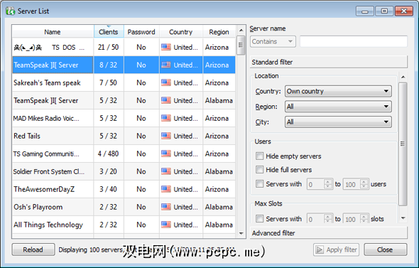 与大多数以游戏为中心的语音聊天解决方案一样,TeamSpeak是没有像Skype这样的集中式网络。相反,TeamSpeak服务器由个人托管,您必须连接到它们。这意味着,如果要使用自己的服务器,则需要自托管或 rent 。如果您不希望拥有自己的服务器,则仍然可以浏览TeamSpeak的公共服务器列表(如上图所示)。