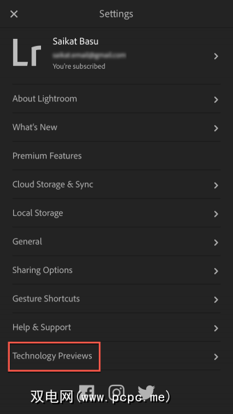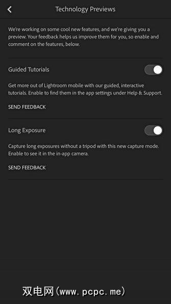 在Lightroom Mobile上启用技术预览