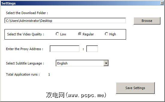 由于TED Downloader是如此小巧,紧凑,因此您可以修改的选项不是很多。除了更改视频质量,下载位置和字幕语言外,没有其他事情要做。