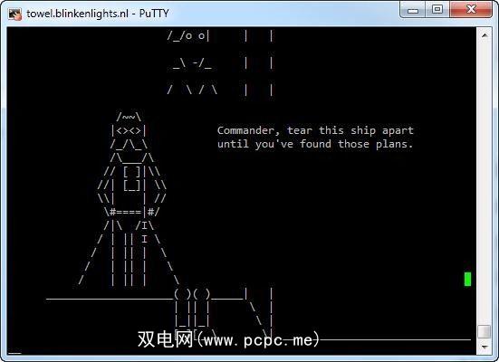 如果这个场景看起来很熟悉,那是因为它是ASCII版“星球大战"的一部分。您可以在telnet://towel.blinkenlights.nl或YouTube上进行查看。