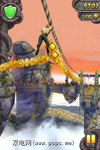 那么Temple Run 2中有什么新功能?首先,关卡中的拉链线会迫使您倾斜设备,以便在跌落时收集硬币。太酷了,但更有趣的是矿车部分。您不必跳车,而是跳上购物车,必须倾斜设备以避免撞到东西。