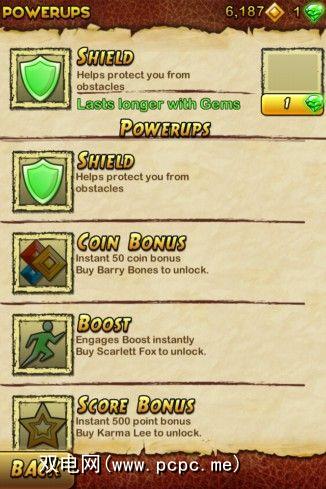 就像原始版本一样,有很多强化功能可以帮助您获得尽可能在水平上。 Temple Run 2中有一些新的道具,但是原始版本中最有用的仍然是续篇的关键部分。