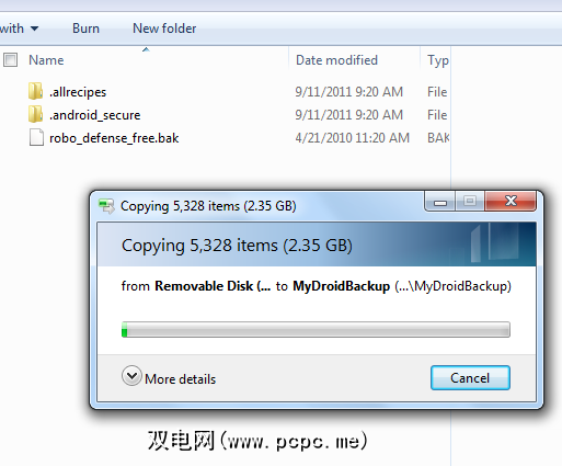 就我而言,整个备份约为2.35 GB,大约需要2到3分钟。只需让传输完成它的工作,当您完成操作后,您的Android手机设置现在将完全备份并可以在将来的某个日期使用。