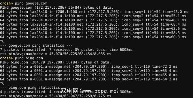 键入 ping [域] 即可在Chromebook上运行ping测试。