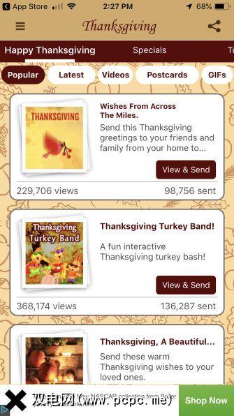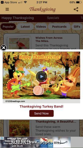 感恩节贺卡和祝福来自流行的123Greetings.com。该应用程序为您提供了1,000多种免费的感恩节问候供您选择。它还提供了可以轻松发送给亲人的视频卡,明信片和GIF卡。