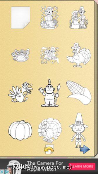 让孩子们使用iOS的可爱图画书应用为感恩节创作一些艺术品。
