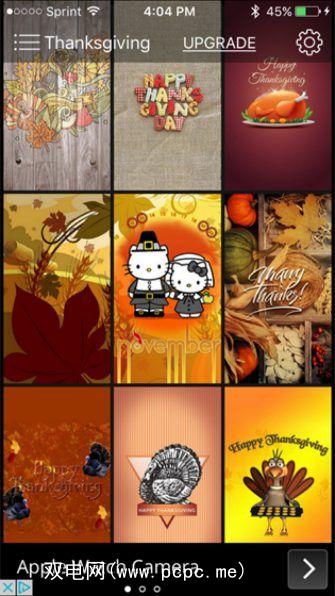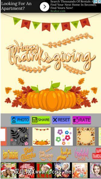 如果您喜欢将自己的照片用作问候语,请查看“感恩节相框"。该应用程序提供了50多个漂亮的框架,100个装饰贴和各种字体样式。
