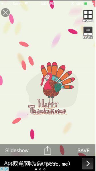 选择墙纸后,您可以将其保存到相机胶卷中或与朋友分享。该应用程序还包括一个幻灯片选项,因此您可以在浏览背景时坐下来休息。感恩节墙纸和背景还提供其他假期和季节的图像,使其在一年中的任何时间都有用。