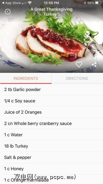 每个食谱都有一张照片,配料和用法说明。该应用程序可让您保存收藏夹并与他人共享食谱。因此,如果您打算在感恩节期间在市场上尝试一道新菜,此应用程序将为您服务。