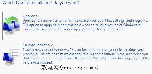 在这里您可以决定所需的安装类型。如果这是您第一次安装Win7RC,请选择自定义(高级)。不用担心,它根本没有真正先进。