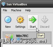 您将返回VirtualBox应用程序的主窗口。现在只需选择您的Win7RC虚拟机并单击开始。新的虚拟机会话开始后,Windows 7 RC将开始安装。