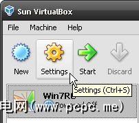 打开Sun VirtualBox应用程序,然后单击“设置"按钮,例如