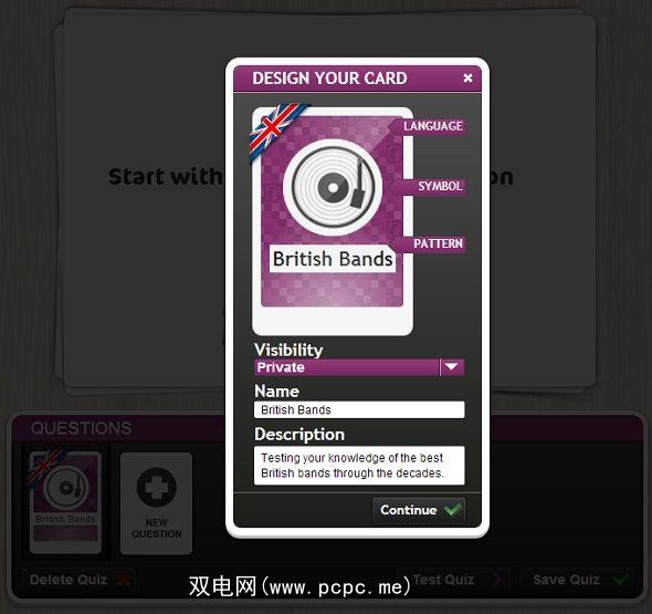 您首先要创建一张卡片,将测验出售给Quizter先生的其他用户。您选择语言,符号和模式,然后添加名称和简短描述以完成该过程。从这里您可以一次添加一个问题,直到对测验感到满意为止。