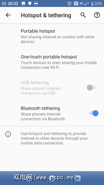 另一种共享移动互联网连接到PC,笔记本电脑或平板电脑的方法是使用蓝牙。短程无线技术具有足够的带宽,可以在手机和配对设备之间来回路由数据。