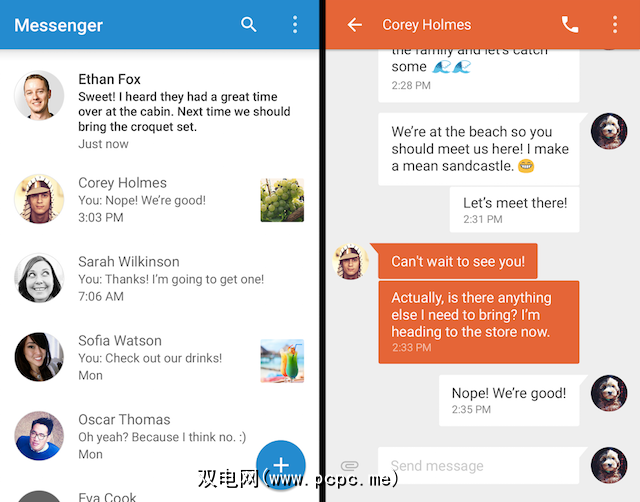 Google的Messenger :如果您使用的是非Nexus设备,并且希望获得通用的Android体验而无需生根发芽,则可以下载Google的简单,官方消息应用程序。搜寻您的文字也非常快捷,比我见过的其他任何应用程序都要快。