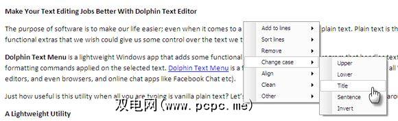 Dolphin Text Menu(海豚文本菜单),顾名思义,它具有文本功能菜单,您可以只需用热键打电话。默认热键为CTRL + 0(数字键)。您可以从 Options 设置更改热键。